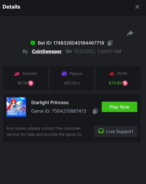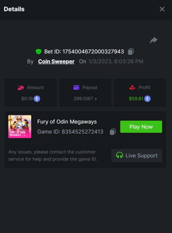 7. hot volcano - https://bc.game/sd/?sd=10SYOIO7ZEO93N - 1513.15x Bet ID: 1743939335900390528 camno de chilli - https://bc.game/sd/?sd=10SYQ0QXTML2QB - 70 x Bet ID: 1743940869443623431 candy 100x - https://bc.game/sd/?sd=10SYQGYJ50T3BN Bet ID: 1743941303908381191 Wolf Hiding - Bet ID: 1743934738919953597 - 500.20x https://bc.game/sd/?sd=10SY237RTTWDfN