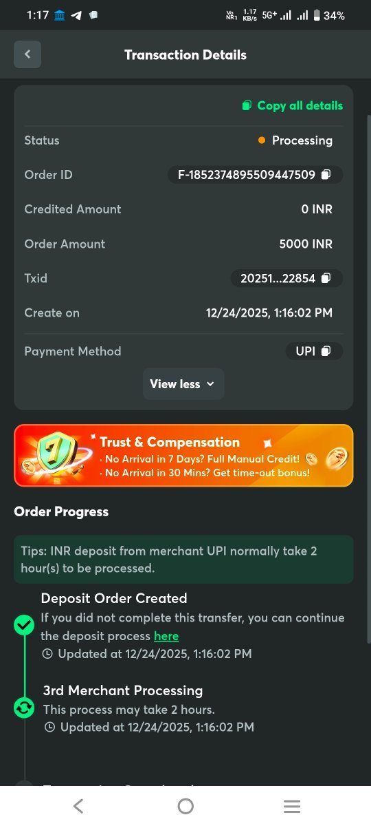 Deposit not credit even merchant has received payment successful