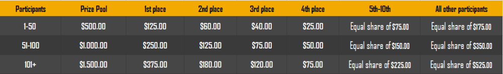 3. Thanks for taking part in our event. We sent Bonus Codes via message on forum to 150 qualified participants. If you are having any difficulty in claiming your prize, drop me a message directly or get in touch with live support. Rank User-ID Username Total Multi Rewards 1 5403784 Gallus Anonymus 2507,25 $ 375,00 2 2323499 CryptoNoypi 1992,98 $ 180,00 3 1961686 Erifyli 989,45 $ 120,00 4 3727030 MoneyMakerBR 888,70 $ 75,00 5 425357 MaksatMeua 768,78 $ 37,50 6 2015551 HAMIDA 645,25 $ 37,50 7 3172255 EstheticCAKE 587,99 $ 37,50 8 1999854 Bkkar 568,16 $ 37,50 9 3906246 StopMy 485,00 $ 37,50 10 3984671 Ciciaq 460,56 $ 37,50 11 5840645 1nscrutabl3 452,80 $ 3,75 12 3539068 Aariz 449,00 $ 3,75 13 2031705 АVA59RUSOS 383,65 $ 3,75 14 3207161 대박 381,40 $ 3,75 15 563713 WAXP 357,30 $ 3,75 16 247378 0713LuCkY23 348,56 $ 3,75 17 3014760 JuanLa️yTV 342,79 $ 3,75 18 5229123 futomomo 329,54 $ 3,75 19 3265198 zeroreturn 323,72 $ 3,75 20 898760 CryptoETV 289,09 $ 3,75 21 927033 natojp100 282,50 $ 3,75 22 3401191 Spritz 276,90 $ 3,75 23 1958775 KANG JUDI88 270,80 $ 3,75 24 1488277 Basic Thedric 241,25 $ 3,75 25 2253866 Carlosponzonia 238,24 $ 3,75 26 3442281 Choosy 236,60 $ 3,75 27 1341659 Elpresidente 232,43 $ 3,75 28 1181785 yellowstone 227,33 $ 3,75 29 1175373 SugarAngel 226,73 $ 3,75 30 886721 sanjahimik 221,93 $ 3,75 31 721786 Jendral Sudirman 217,32 $ 3,75 32 1524051 yllaeR 201,40 $ 3,75 33 2147371 Magr0 191,81 $ 3,75 34 581215 ROjI 177,80 $ 3,75 35 3670027 xacutarafwb 163,40 $ 3,75 36 2187077 Unwilling Kepner 160,00 $ 3,75 37 4520514 Capitanblack1987 158,30 $ 3,75 38 6957861 Sjznmiopkwb 143,00 $ 3,75 39 1045506 Munrraxx 126,50 $ 3,75 40 1340091 Hokage 118,80 $ 3,75 41 4744954 ArthurrMiguel 108,83 $ 3,75 42 7153584 Axeld189 101,40 $ 3,75 43 5896071 kahirata 99,01 $ 3,75 44 476997 ASU ASLI 98,80 $ 3,75 45 3279205 Barbatosxd 98,61 $ 3,75 46 4590462 SLVone 95,50 $ 3,75 47 6185951 thepeakyblinders 92,52 $ 3,75 48 2193302 puspita jr 88,71 $ 3,75 49 3382239 🆂🅼🅾🅺E🆂 87,93 $ 3,75 50 6924058 Winston Victory 83,91 $ 3,75 51 3539039 Jcam 79,00 $ 3,75 52 3539190 Nurjara 78,21 $ 3,75 53 2008697 CHINKY 78,08 $ 3,75 54 1215089 Rayan90 74,50 $ 3,75 55 4785707 Loxie 73,03 $ 3,75 56 1912590 thiago18 69,31 $ 3,75 57 1778675 Luckymom777 67,60 $ 3,75 58 7476607 JokerVTN 66,04 $ 3,75 59 3395642 HannahTran 60,00 $ 3,75 60 372689 Betmin 59,60 $ 3,75 61 5088682 Eazwhuuvhwb 58,46 $ 3,75 62 731653 NicoIe 58,40 $ 3,75 63 1180066 abolfazl75 57,50 $ 3,75 64 5351253 _crazy_boy_ 57,31 $ 3,75 65 1028208 Nomophobia 56,20 $ 3,75 66 1202695 selena42 55,82 $ 3,75 67 1491282 Japsim 54,15 $ 3,75 68 1039263 Parker23 53,45 $ 3,75 69 6440564 Urlhluabkwb 53,01 $ 3,75 70 6078098 SleepingRankerwb 52,60 $ 3,75 71 1196308 Master 46,00 $ 3,75 72 200579 BC_Morningstar 45,50 $ 3,75 73 1047554 Kristalina 42,14 $ 3,75 74 770103 Dudewheresmycoin 40,84 $ 3,75 75 562492 Omogbxqtupb 40,00 $ 3,75 76 4456056 Kikikom 36,50 $ 3,75 77 4602285 ☆☆Targaryen☆☆ 36,20 $ 3,75 78 3068073 Monusingh2023 36,04 $ 3,75 79 1181680 B0unty 35,04 $ 3,75 80 192004 nica19 33,83 $ 3,75 81 2691204 ʀᴇʏʜᴀɴᴀ 32,00 $ 3,75 82 53879 Jorozz 32,00 $ 3,75 83 1047552 Eve2807 31,90 $ 3,75 84 3435889 Fairacial 31,80 $ 3,75 85 205053 CivicMe 29,60 $ 3,75 86 1757318 Rodemmale 27,21 $ 3,75 87 4753959 Xxxyyy 27,03 $ 3,75 88 1604256 Chebster 25,01 $ 3,75 89 1138386 Fan StopMy 24,02 $ 3,75 90 4602884 Mr Yarbles 23,82 $ 3,75 91 1047551 itachixbox98 22,40 $ 3,75 92 1172350 Never ever 21,72 $ 3,75 93 2981117 Jonny590 21,60 $ 3,75 94 1987477 med med med 21,10 $ 3,75 95 4036662 Unlim 21,02 $ 3,75 96 2187197 Prize Grazia 20,80 $ 3,75 97 3296086 UchihaCoco 20,52 $ 3,75 98 1345321 Satoshimaker 20,40 $ 3,75 99 3550029 kaftanujwb 20,02 $ 3,75 100 2183993 diasloveu 20,00 $ 3,75 101 2604472 Feker 20,00 $ 3,75 102 3292213 RisingStarGws 19,50 $ 3,75 103 263474 miss YOKO 19,00 $ 3,75 104 1021921 Btcking 18,50 $ 3,75 105 1062014 POLANA 18,42 $ 3,75 106 339025 CARDANOZ™ 18,20 $ 3,75 107 3479254 ꧁Hell࿐beckons✾ 17,90 $ 3,75 108 1372057 ♚Ⱡỗ𝍯rí┳hâm 17,60 $ 3,75 109 5298451 Qeels 17,00 $ 3,75 110 3428746 jan026 16,60 $ 3,75 111 1219664 アみJohn Wick 16,41 $ 3,75 112 7008517 Wdvrmezpkwb 16,22 $ 3,75 113 1644160 hadilam 15,82 $ 3,75 114 2508658 Educated Waddington 15,50 $ 3,75 115 6392424 BatGuy 15,31 $ 3,75 116 357872 pacoquiche 15,02 $ 3,75 117 6077471 有線ハイビスカス 15,00 $ 3,75 118 6914101 danmer 15,00 $ 3,75 119 6843868 Santyago159 14,30 $ 3,75 120 7342830 TopGun 14,11 $ 3,75 121 79871 Satosiji 14,10 $ 3,75 122 6955128 Extnmfopkwb 14,00 $ 3,75 123 3877293 Nattasya 13,90 $ 3,75 124 6946958 Gfdnmunpkwb 13,81 $ 3,75 125 7365931 tam19xx 13,80 $ 3,75 126 6914413 Sanders 13,21 $ 3,75 127 1007482 LemaK 12,80 $ 3,75 128 5527289 Jeyxiygwiwb 12,51 $ 3,75 129 7254424 Dantzx 12,51 $ 3,75 130 2583418 Creepybits 12,00 $ 3,75 131 6810384 Mmeembjokwb 12,00 $ 3,75 132 952544 Aponix 11,01 $ 3,75 133 4668860 GzJoker 11,00 $ 3,75 134 6916140 Rewner 11,00 $ 3,75 135 3738334 DHEZEHYT 10,91 $ 3,75 136 3442291 Sukaboy 10,60 $ 3,75 137 1198055 winit 10,40 $ 3,75 138 1446808 Aritosteles 10,40 $ 3,75 139 4110420 RomaBeton 10,40 $ 3,75 140 2320773 Shabby Shakti 10,30 $ 3,75 141 2309478 lun321 10,01 $ 3,75 142 6811551 diana189 10,01 $ 3,75 143 6153041 Negri2O18 10,01 $ 3,75 144 6600337 BeelZebub 10,01 $ 3,75 145 1538963 pompops 10,00 $ 3,75 146 3548511 Kavana 10,00 $ 3,75 147 3713465 VétMángĐại Hiệp 10,00 $ 3,75 148 3807300 Angel baby 10,00 $ 3,75 149 2133151 bassabar 10,00 $ 3,75 150 2185398 Cuban gambler 10,00 $ 3,75