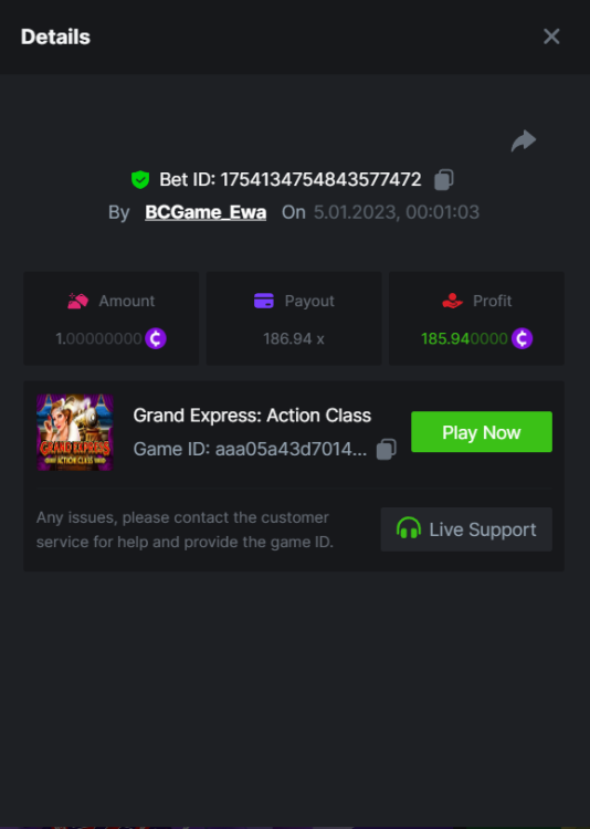 7. $1,500 Weekend Multiplier Battle Hey, hey, VIPs! We're delighted to announce new a weekend-long battle with the Ruby Play provider this time. The event will occur from January 6, 09:00 am GMT until January 9, 09:00 am GMT. To qualify for the prize, you must participate and get the highest multiplier possible on the games listed below. This is your chance to win some rewards and show off your skills. So get ready to battle it out and have some fun! - (details further down). Duration: 06/01/2023 09:00 AM – 09/01/2023 09:00 AM UTC Prize Pool: $1,500 Eligible Games: Play below games to participate in this event: Egyptian Sun Diamond Explosion 7s Shake Shake Leprechaun Elephant Stampede Grand Express Action Class The highest multiplier reached in each game will be added together and counted as total points. Bonus buys are allowed. If the player submits multiple winning entries for the same game, the entry with the highest multiplier will be valid. How to Enter Access the game to select your Bet ID, click on the Share icon (↷) and then Copy link. Return to the topic, paste the link in the field "Reply to this topic..." E.g.:https://bc.game/#/sd/110PJDZ5HN8U8J In the same post, upload a screenshot of your win by clicking the game ID WITH VIEW IN USD mode ENABLED (accessible at the bottom of dropdown menu for your wallet up top, and Submit Reply. Done! This way, we can ensure that your bet indeed met the minimum requirement at the time of placing it: https://bc.game/#/sd/110PJDZ5HN8U8J Minimum VIP Tier Must be VIP04 or higher in order to enter this event. Minimum Payout Minimum payout to qualify is 10x (in any game) for a valid entry. Minimum Bet Size Egyptian Sun - $0.20 Diamond Explosion 7s - $0.50 Shake Shake Leprechaun - $0.20 Elephant Stampede - $0.50 Grand Express Action Class - $0.50 Eligible Coins All cryptocurrencies are eligible (excepting JB, and BCL). Free Play Mode is not valid for this event. Prize Pool & Reward Breakdown The winners will win a share of the prize pool based on the detailed ranking below. All other participants who complete all minimum requirements will receive a 35% share of the prize pool. Additional Rules: Please combine all of your hits together in a SINGLE post. Edit your existing post for additional hits, don't create a new post. Each eligible entry must have the Bet Slip URL, failure to include it will disqualify participation in the event. Bet Slip image is not mandatory. Bets must be posted within 24 hours of placing bet in order to keep things fair for everyone. Bets must be made during the specified time window stated above. This thread will lock automatically when the time period is over. One (1) entry per household. Anyone found attempting to win multiple prizes will be disqualified from this challenge as well as all future challenges. Failure to follow instructions will result in your submission being null and void. By entering this challenge, you acknowledge that BC.Game has the final decision on results and placement. Payouts will be distributed after the event is finished. Please note that it could take up to 48 hours after the completion of the event.