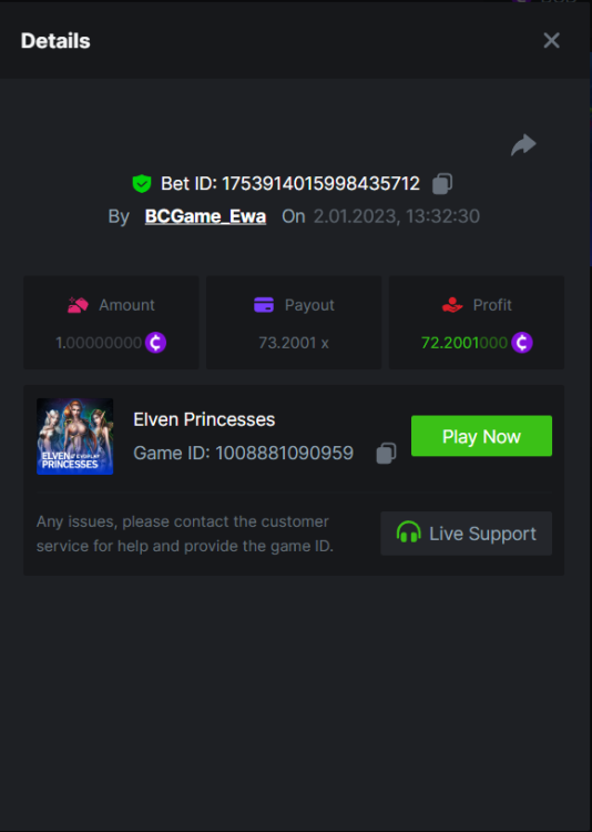11. $1,500 Evoplay Multiplier Battle Hey VIPs! The weekend is over, but that doesn't mean the fun has to end! We are glad to announce a new event with the Evoplay provider. It runs from January 2 until January 6, and each participating in the event must achieve the highest payout possible on the Evoplay slots listed below. Plus, all eligible participants will be rewarded equally. Good luck, and show us big wins! – (Check all the conditions for participation below). Duration: 02/01/2023 1:00pm – 06/01/2023 1:00pm UTC Prize Pool: $1,500 Eligible Games: Play below games to participate in this event: Wolf hiding bonus buy Elven Princesses Mega Greatest Catch Cycle Of Luck Collapsed Castle The highest multiplier reached in each game will be added together and counted as total points. Bonus buys are allowed. If the player submits multiple winning entries for the same game, the entry with the highest multiplier will be valid. How to Enter Access the game to select your Bet ID, click on the Share icon (↷) and then Copy link. Return to the topic, paste the link in the field "Reply to this topic..." E.g.:https://bc.game/#/sd/110JHZYRK6KJRN In the same post, upload a screenshot of your win by clicking the game ID WITH VIEW IN USD mode ENABLED (accessible at the bottom of dropdown menu for your wallet up top, and Submit Reply. Done! This way, we can ensure that your bet indeed met the minimum requirement at the time of placing it: https://bc.game/#/sd/110JHZYRK6KJRN Minimum VIP Tier Must be VIP04 or higher in order to enter this event. Minimum Payout Minimum payout to qualify is 10x (in any game) for a valid entry. Minimum Bet Size Wolf hiding bonus buy - $0.10 Elven Princesses - $0.10 Mega Greatest Catch - $0.10 Cycle Of Luck - $0.10 Collapsed Castle - $0.10 Eligible Coins All cryptocurrencies are eligible (excepting JB, and BCL). Free Play Mode is not valid for this event. Prize Pool & Reward Breakdown The winners will win a share of the prize pool based on the detailed ranking below. All other participants who complete all minimum requirements will receive a 35% share of the prize pool. Additional Rules: Please combine all of your hits together in a SINGLE post. Edit your existing post for additional hits, don't create a new post. Each eligible entry must have the Bet Slip URL, failure to include it will disqualify participation in the event. Bet Slip image is not mandatory. Bets must be posted within 24 hours of placing bet in order to keep things fair for everyone. Bets must be made during the specified time window stated above. This thread will lock automatically when the time period is over. One (1) entry per household. Anyone found attempting to win multiple prizes will be disqualified from this challenge as well as all future challenges. Failure to follow instructions will result in your submission being null and void. By entering this challenge, you acknowledge that BC.Game has the final decision on results and placement. Payouts will be distributed after the event is finished. Please note that it could take up to 48 hours after the completion of the event.